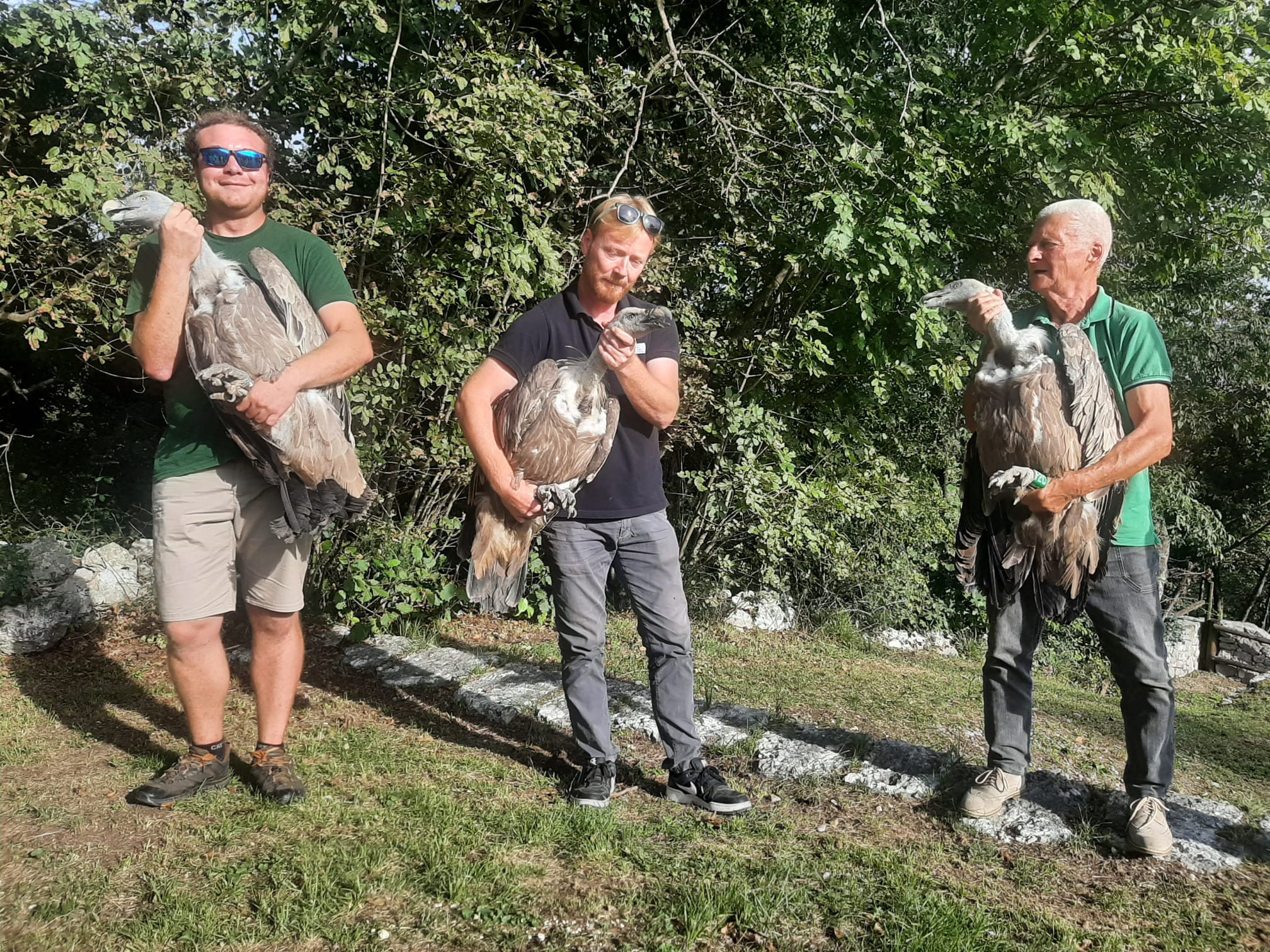 Un “veterano” di 30 anni, nato in Spagna nel 1995 e poi importato, nel ’97, nella Riserva naturale regionale del lago di Cornino, alla cui colonia di avvoltoi si è unito; un esemplare adulto (non inanellato: sulle sue origini non ci sono dunque certezze) catturato a fini di studio pochi giorni fa e uno, infine, nato nel 2020 (quasi certamente in Friuli o in Croazia) e marcato nel novembre dello stesso anno in Israele, dove si era evidentemente spinto a soli pochi mesi di vita: sono i tre grifoni liberati oggi, domenica 7 settembre, alla Riserva naturale regionale del lago di Cornino nell’ambito della tradizionale manifestazione “Vivi e liberi di volare”, momento di punta della programmazione annuale curata dalla Coop Pavees, che sotto la presidenza di Luca Sicuro si fa carico della gestione del sito protetto. Alto, come nella miglior tradizione dell’evento, l’afflusso di pubblico, fin dall’apertura della giornata di studio e divulgazione, che ha offerto interessanti approfondimenti scientifici: il momento più atteso e dunque più partecipato è stato però proprio quello della reintroduzione in natura dei maestosi rapaci, liberati insieme a numerosi altri uccelli salvati dal Centro di recupero della fauna selvatica di Campoformido.