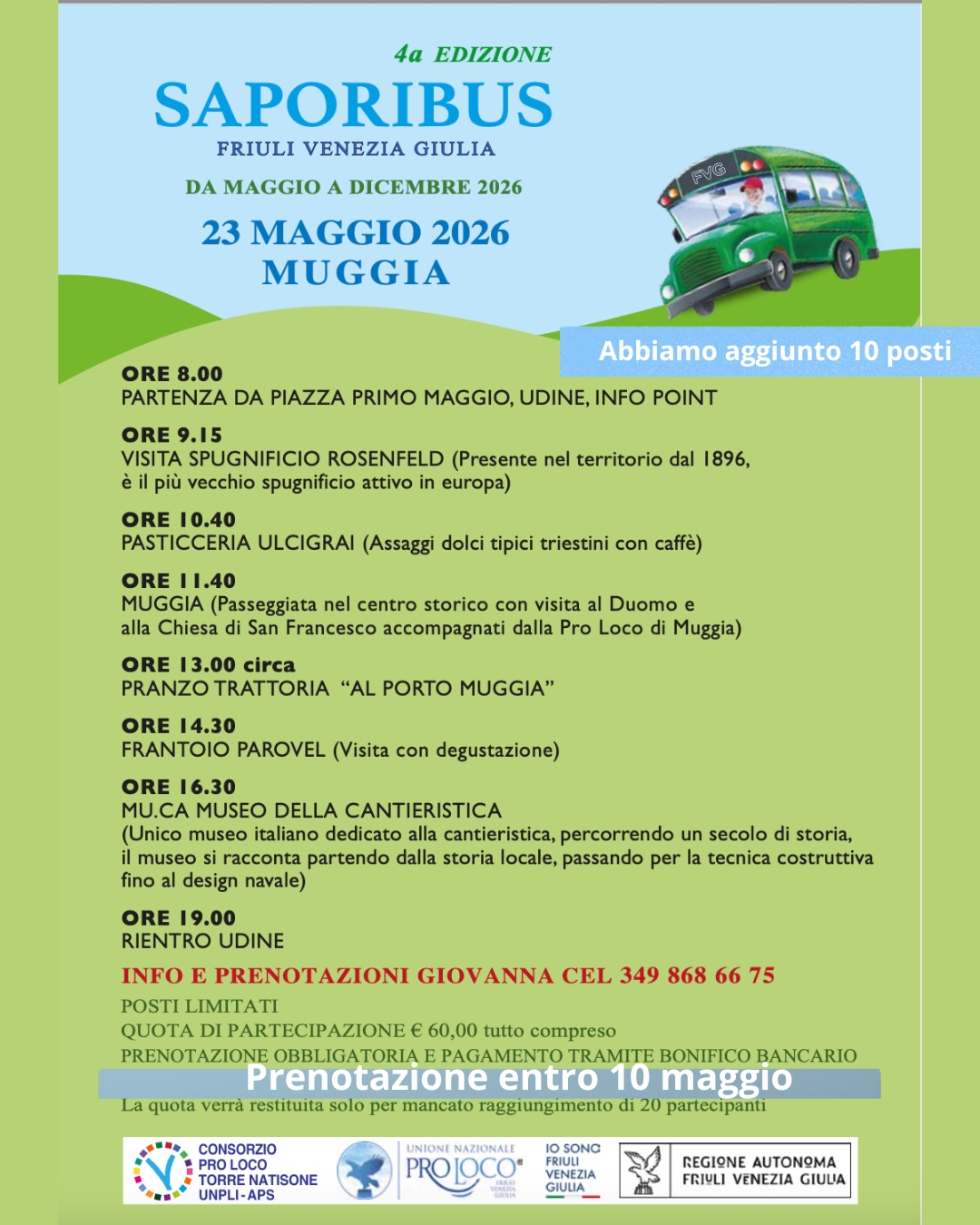 Dopo il successo delle precedenti edizioni, torna sabato 23 maggio “Saporibus”, il bus del gusto con partenza e rientro dal centro di Udine, che attraversa il Friuli Venezia Giulia unendo enogastronomia, cultura e mobilità sostenibile. Giunto alla quarta edizione, il progetto è promosso dal Consorzio Pro Loco Torre Natisone UNPLI APS e si conferma un format capace di valorizzare territori e tradizioni locali attraverso un turismo lento e consapevole.